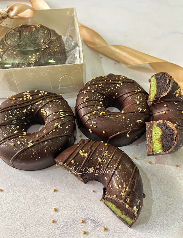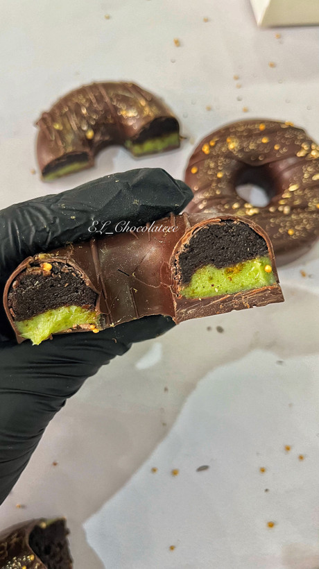 شکلات دست ساز دونات با مغز پسته و کیک براونی