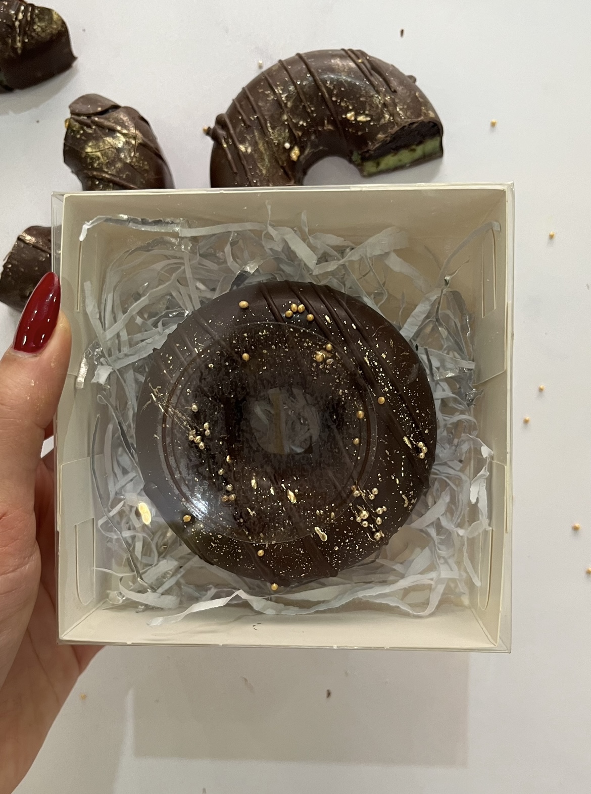 شکلات دست ساز دونات با مغز پسته و کیک براونی
