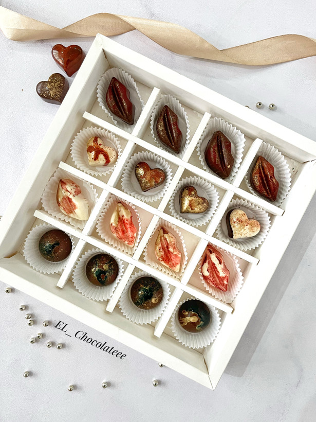 شما میتوانید شکلاتها را در سه طعم تلخ، شیری و سفید سفارش دهید و فیلینگ دلخواهتان را از میان گزینههای موجود در اسلاید آخر انتخاب کنیدو در قسمت توضییحات بنویسید.