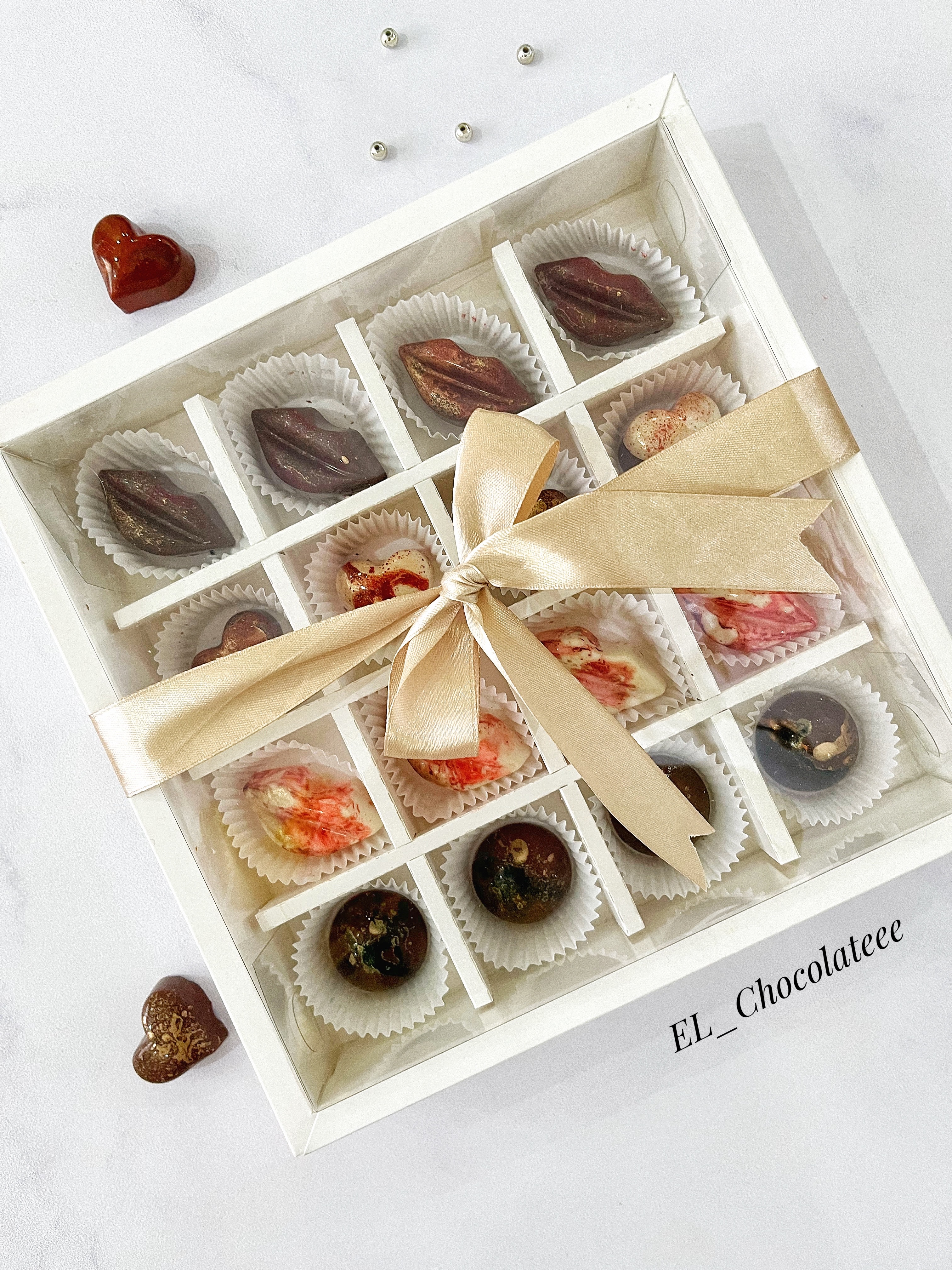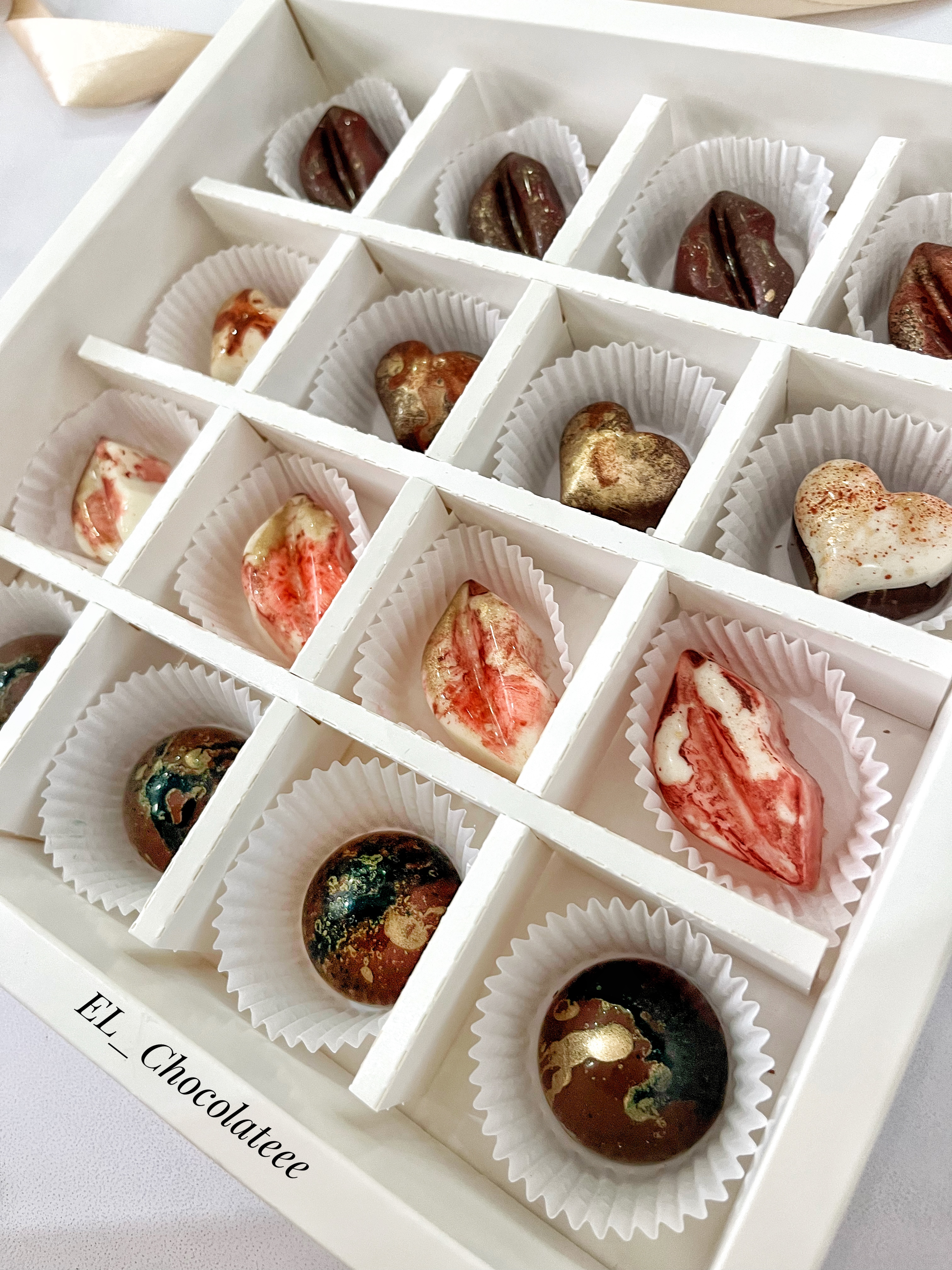 شما میتوانید شکلاتها را در سه طعم تلخ، شیری و سفید سفارش دهید و فیلینگ دلخواهتان را از میان گزینههای موجود در اسلاید آخر انتخاب کنیدو در قسمت توضییحات بنویسید.