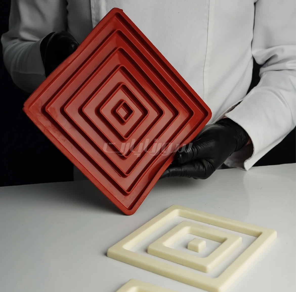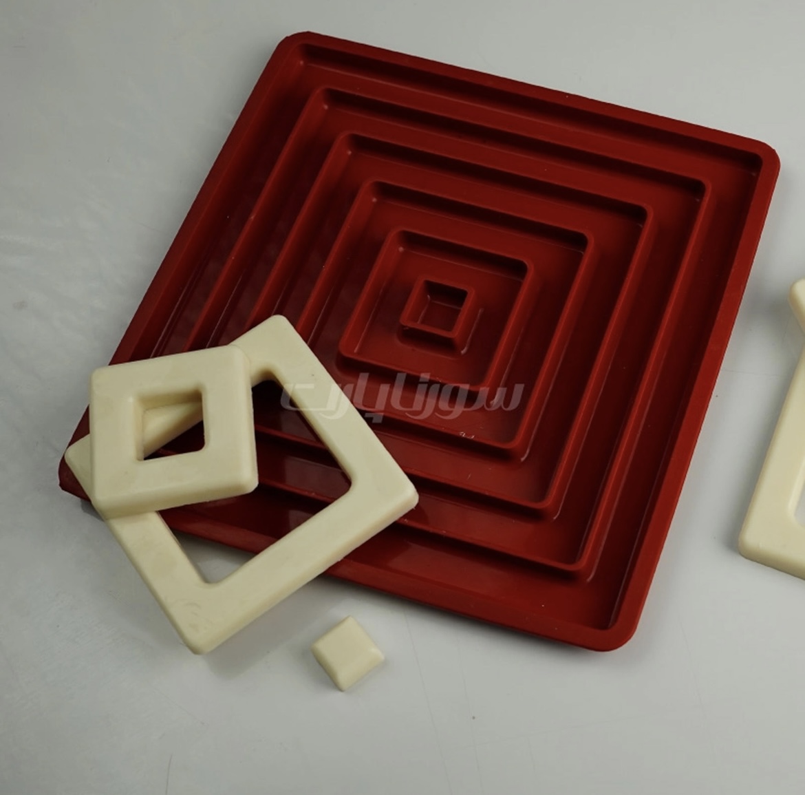 قالب سیلیکونی مغزی مربع یکی از پرکاربردترین قالبها برای تهیه شکلاتهای مغزدار و دسرهای لایهای است. طراحی مربعی این قالب باعث میشود محصول نهایی ظاهری منظم، حرفهای و مناسب فروش ویترینی داشته باشد.