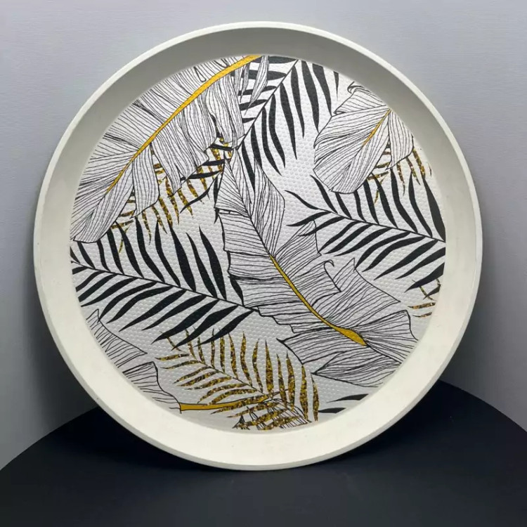 سینی گرد پلاستیک فشرده طرح ثابت دور سفید با قطر 40