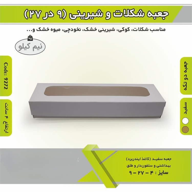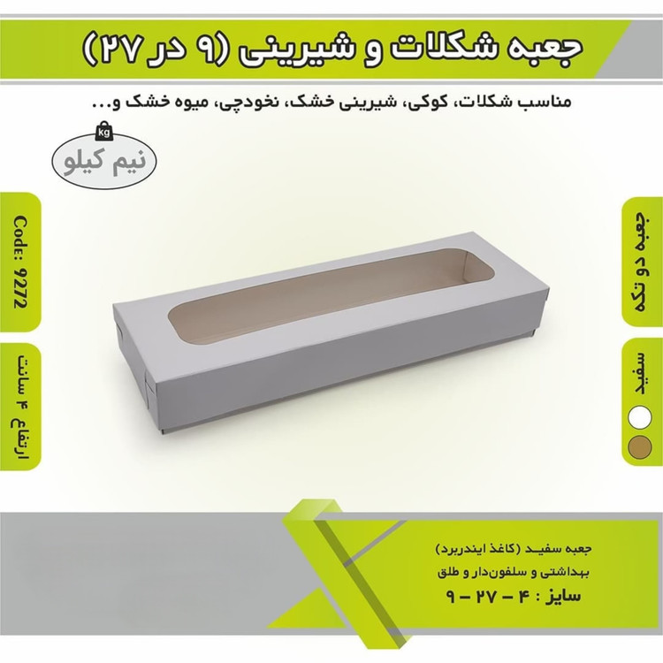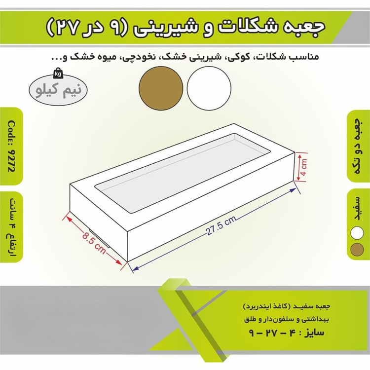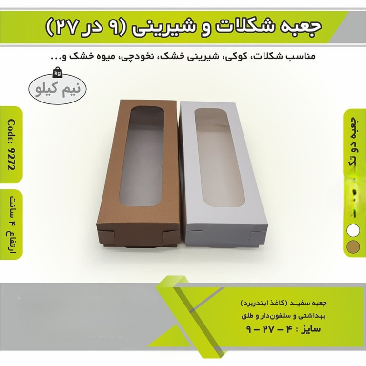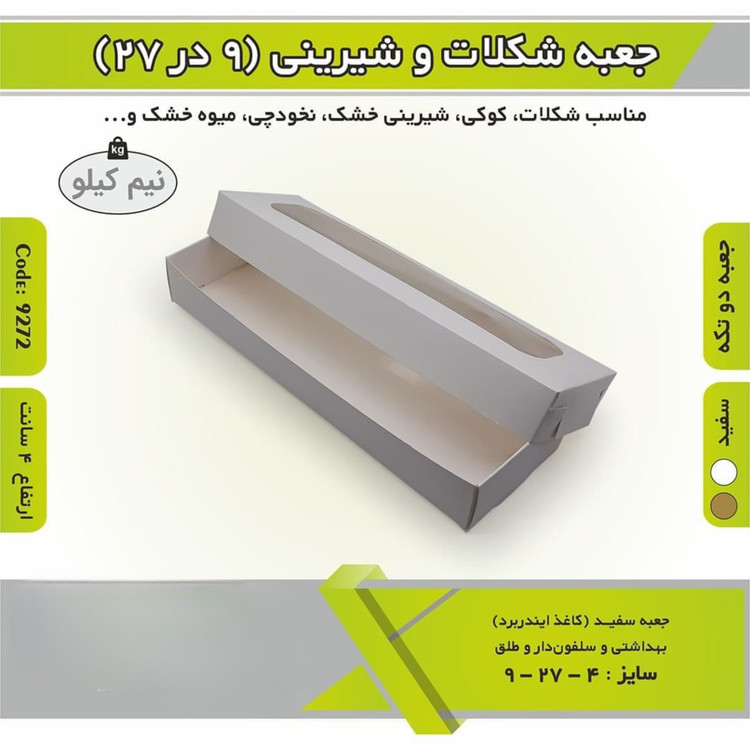 جعبه شیرینی شکلات باقلوا ۸/۵ در ۲۷