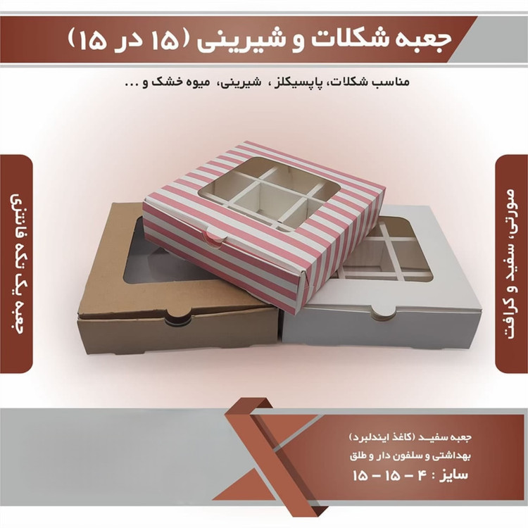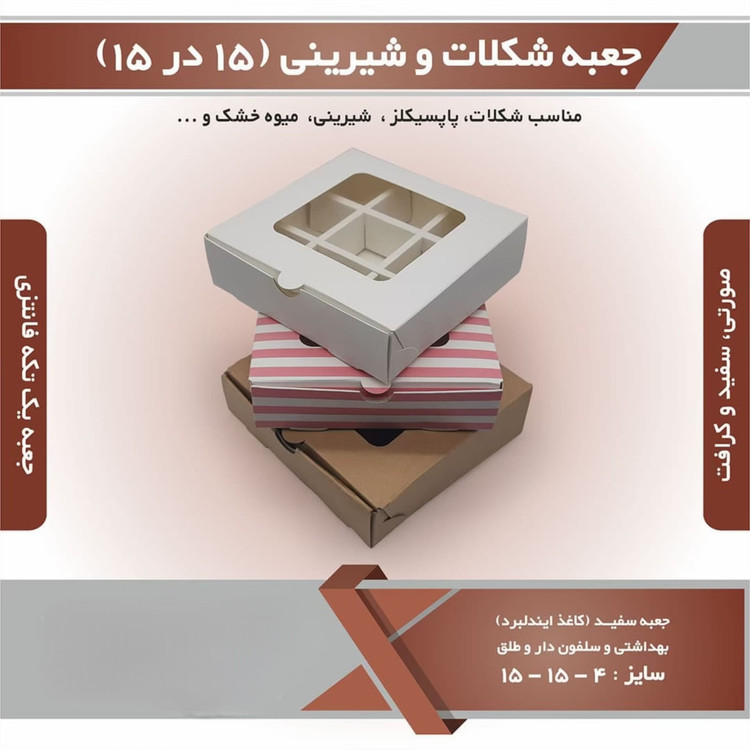 جعبه شیرینی و شکلات 15 در 15 ارتفاع 4 سانتیمتر