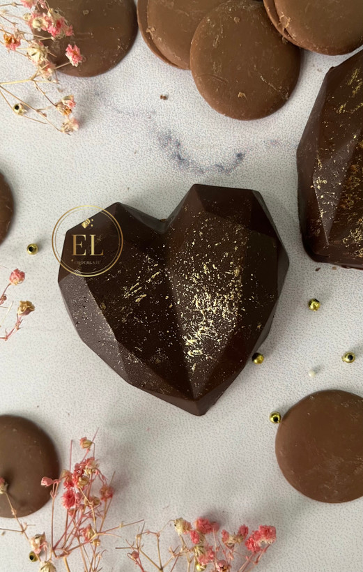 شکلات قلبی دست‌ساز فیلینگ دبی | ابعاد ۵.۵×۵.۵ سانتی‌متر شکلات عاشقانه ال چاکلت