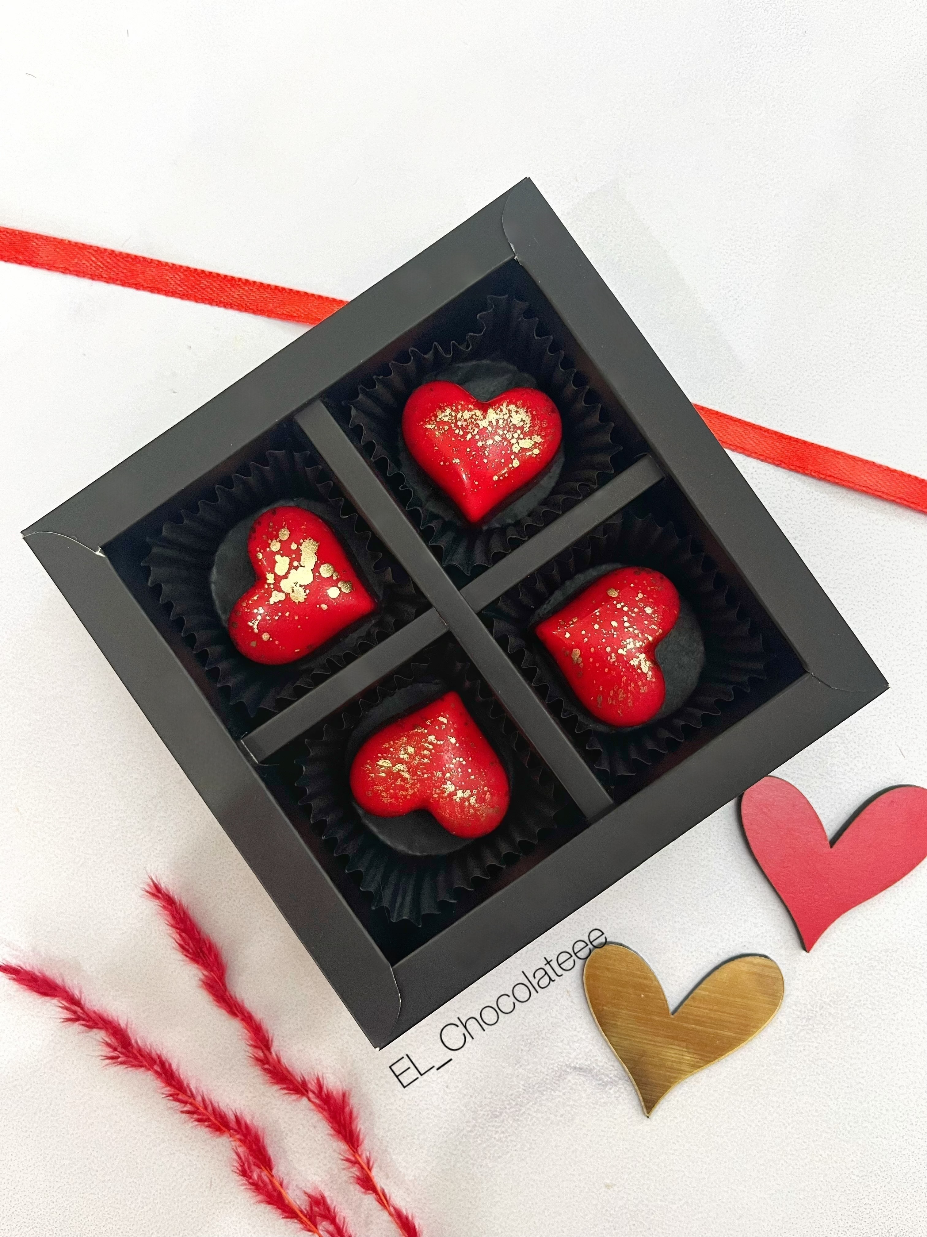 شکلات بن بن دست ساز قلب بسته ۴ عددی با مغز انتخابی